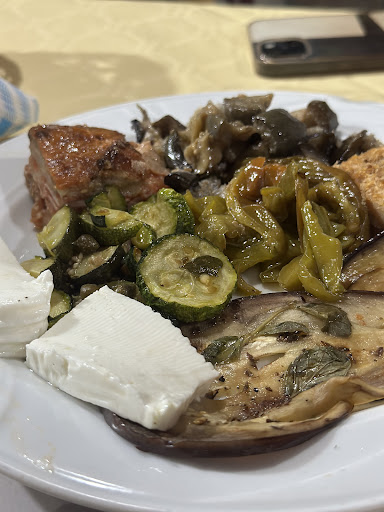Read moreAbbiamo prenotato una sera giovedi 8 agosto in questo ristorante, il cameriere proprietario molto gentile ci fa accomodare. Inizia con il dirci se poteva consigliarci qualcosa.(Fidarsi è bene, non fidarsi è meglio) Prendiamo 2 antipasti della casa(terra). In unico piatto al centro zucchine e melanzane pastrocchiate, pezzettini di parmigiana sotto il groviglio e pizza di patate.(Impiattamento indecoroso). Sapori non pervenuti. Un piattino di formaggio fresco da supermercato. Tutto a km0 come era stato decantato dal proprietario. Adesso arriva il bello. Sotto suo consiglio il ciccio con pomodorini, durissimo quasi da rompersi i denti. Avevamo ordinato n.3 costate e n.2 tagliate ed un piatto di pasta al pomodoro. Ma udite udite, arrivano 3 fettine minuscole di una nervosità e durezza mai mangiate e le 2 tagliate totalmente secche e di grammatura 150gr alla modica cifra 13 €, dopo aver detto di cuocere a cottura media. Le ragazze per fame hanno mangiato la tagliata. Ma le presunte costate/fettine 8€ Lasciate interamente nel piatto. Chiamiamo il proprietario facendo notare che la carne era immangiabile. Con totale imbarazzo iniziava a tergiversare, dicendoci che gli dispiaceva, dicendoci che il macellaio gli altri giorni aveva portato delle costate più grandi e tenere,piu grandi del nostro piatto. Morale della favola, per farsi perdonare ci aveva proposto un piatto di dolci, da noi rifiutato. Chiediamo subito il conto e ci porta il conto anche della carne lasciata interamente nel piatto. Scandaloso! Come si può fare ristorazione in questo modo? Facendo spaventare i turisti e per di più pugliesi come...