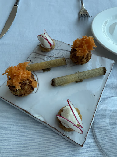 Read moreScrivo questa recensione con molto dispiacere, perché sin dalla prenotazione avevo delle altissime aspettative per questo ristorante… Il posto si presenta decisamente bene, una bellissima carta dei vini e un menu con prezzi adeguati. Purtroppo però la realtà dei fatti è che mi sono seduto alle 20:15 e mi sono alzato dopo un percorso degustazione di otto portate alle 23:30, nella mia piccola esperienza enogastronomica tre ore per un servizio di otto portate è decisamente troppo lungo!! il menù è semplice non c’è una ricerca approfondita sui piatti i sapori proposti sono più che già sentiti… detto questo la grossa pecca rimane il servizio spendere 200 € e aspettare quasi un ora per mangiare 20 g di carne come secondo non è accettabile in un ristorante di questo livello, gran peccato perché il servizio e le tempistiche fanno tanto! Per il resto abbiamo mangiato bene ma niente che ci abbia...