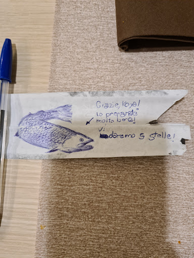 Read moreSono andato con la mia ragazza.Che dire,tutto è straordinariamente buono,il ristorante è ben organizzato,gli interni e i tavoli sono decorati in modo tale da creare un'atmosfera accogliente ed immersiva.Lo staff è molto accogliente. Abbiamo ordinato il menù all you can eat...penso che abbiamo fatto estinguere qualche specie ittica per quante cose ci sono arrivate.Per quanto abbiamo mangiato ci sono venuti i muscoli alla mandibola.Siamo tornati a casa sazi e contenti,sicuramente ritorneremo.Uniche"pecche"sono il coperto che costa 2€ e l'acqua che costa 3 euro.Con due euro di coperto mi aspettavo che andassi a pescare il pesce insieme allo staff.Per il resto comunque i prezzi sono talmente accessibili tanto che mi sentivo in colpa per aver ordinato tutta quella roba pagando così poco.Ho comunque lasciato un disegno sul tavolo per esprimere la mia...