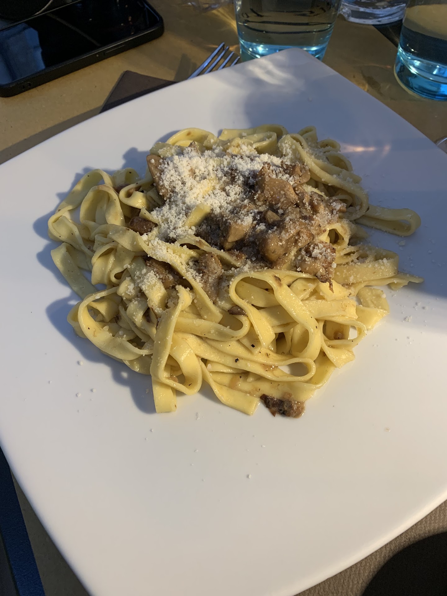 Read moreMy uncle and I ate here this evening after exploring Orvieto for the day. After reading about the local cuisine, we knew we wanted to try wild boar and truffles, and found them on the menu at this beautiful restaurant down a side street with a gorgeous outdoor seating area. We opted for the truffle bruschetta, the papardelle with wild boar white sauce (not creamy, just with plain oil rather than tomato), and the wild boar stew. All were amazing, as was the sautéed chicory we ordered to get our veggies in. The truffle presentation was a treat, as they grated it onto the bruschetta at the table, which really highlighted the aroma. The house wine was a nice Sangiovese, and we had some tiramisu and Amari to cap everything off. Really a wonderful meal and lovely atmosphere - I would recommend Antico Bucchero to anyone looking for a great dining experience just far enough from the busiest streets to relax and be out...