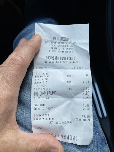 Read moreSono stata in questo locale oggi con mio marito e mia figlia per una veloce pausa pranzo dopo un giretto in città ...abbiamo ordinato due tramezzini al tonno e un panino con prosciutto e pomodoro.... be'...prima è arrivato il mangiare, poi le tovagliette, ( dopo che ho chiesto di portare via quelle sporche ) e poi il bere(acqua). Dopo la consumazione vado alla toilette e niente carta igienica,niente carta per le mani, ho dovuto pulire il water perché era pietoso!! Ma il conto? Vabbè...che dire, i tramezzini 6 euro,il cui pane era secco e il contenuto abbastanza ridotto, ma il panino... OTTO EURO!!!! Nello scontrino c'era scritto "panino grande"...Si,magari. Siete completamente fuori strada, voglia di lavorare e di soddisfare i clienti...