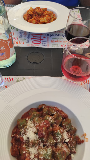 Read moreSpiace dare una stella, visto che in in cucina c'è chi sa il fatto suo: i miei tagliolini con stracciatella e pomodoro fresco erano buonissimi, i dolci pure. Già il sugo al tonno del mio fidanzato molto meno e il contorno mediterraneo aveva ben poco sapore. Ma il vero problema è che una sedicente osteria in un paesino dimenticato dal Signore NON può proporre per 11/13 € miseri 35 grammi di pasta. Forse pensavano che servendola in un piatto superfashion "a cappello", con un ridicolo buchetto centrale, si potesse ingannare il mio stomaco. Purtroppo anche se ho una taglia XS l'ho mangiata in 5 forchettate. Mi sono consolata svuotando il cestino del pane, anche quello mignon. Tra l'altro i taglierini benchè all'uovo erano bianchissimi... al risparmio pure quello. Poi, i contorni erano porzioni poverissime e dulcis in fundo bevo bonarda da 25 anni e quella proposta come tale era non so quale...