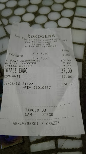 Read moreSerata ottima al nuovo Kokogena! Era un po' che mancavo e devo dire che il locale è migliorato. Un posto accogliente e caldo dove si può cenare con un menù molto vario e accattivante, o gustare un aperitivo sfizioso. Noi abbiamo cenato con degli ottimi hamburger. Anche la mia birra rossa alla spina era buonissima! Da tornarci di sicuro al più presto per passare un'altra piacevole serata e per assaggiare qualcosa di differente. Il personale è simpatico, disponibile e professionale....