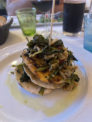 Read moreRistorante molto bello, con grandi finestre che guardano la vallata e fanno godere il panorama. La cucina, buona, ma, dato che è frequentato anche da persone che non sono del posto, i camerieri dovrebbero essere più precisi, e spiegare bene la composizione dei piatti... Noi abbiamo ordinati la crescita con verdure e pomodorini ripassati in padella : molto gustosa, ma mi sono vista arrivare una torre di ben 4 cresce farcita con verdure e pomodori, al ta circa 8 centimetri!!! Se il cameriere ci avesse avvisato, avremmo ordinato un primo in meno, e saremmo passati poi al secondo... La pasta cacio e pepe, buona, ma molto, troppo saporita, (pecorino stagionato salatissimo). Di secondo abbiamo ordinato una tartare di ricciola con mango e filetti di mela verde, peccato che il liquore all'anice con cui era marinata la ricciola ne nascondesse quasi completamente il sapore, delicato e da gustare da sola. Se n'è fossimo stati avvertiti avremmo scelto un altro piatto, tenendo conto che a me l'anisetta non piace ed ho fatto molta fatica a finire.