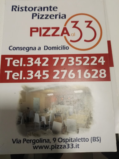 Se siete amanti della buona pizza e volete mangiare un prodotto di qualità, andate Al 33 e ne uscirete soddisfatti. Incuriosito dalle recensioni e volendo provare un locale nuovo, domenica sera abbiamo prenotato un tavolo per 4 persone. È un ristorante/pizzeria che offre soluzioni da asporto ma che ha, al suo interno, una saletta per circa 40 coperti. Le pizze sono straordinarie, partendo dall'impasto per arrivare all'ottima qualità delle materie prime utilizzate. A 49 anni di pizze ne ho mangiate tante, ma non ho memoria di così buone! E vedendo i piatti che giravano tra i tavoli, anche la parte del ristorante deve essere altrettanto valida, dai primi ai secondi. Servizio inaspettato: molto gentili e attenti a tutto per rendere i clienti veramente soddisfatti. L'ambiente è carino, tranquillo e familiare allo stesso tempo. I prezzi sono ottimi considerato la qualità pensavo di spendere di più. Sicuramente diventerà il nostro locale di riferimento. Se siete ancora nel dubbio.. andateci, e non ve ne pentirete. Infine, complimenti a...