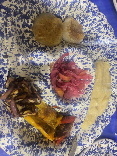 Carino il posto molto spartano. Un po’ di disorganizzazione probabilmente dovuta all’antivigilia di ferragosto e a un’affluenza forte. Cibo buono il piatto di verdure consigliatissimo(melanzane arrostite, peperoni e cipolle bianche al gratin, cipolle rosse di Tropea caramellate,parmigiana bianca di zucchine, pure di fave e pane fritto) molto abbondante, pure di fave speciale!!Bella la bistecca di manzo da 800gr anche se inclusiva di due ossi che incidevano fortemente sul posto. Richiesta la cottura media, arrivata molto cotta. Grigliata mista equilibrata e abbondante. Bombette leggermente sottotono sulla media della valle d’Itria, buonissime per palati non nativi. Giusto rapporto qualità prezzo. Il servizio lento e disattento. Polpette di pane i disponibili dalle 21:40, nessuna comunicazione in tal senso, abbiamo appreso che erano finite solo dopo averle ordinate. Abbiamo ordinato 3 porzioni di polpette di patate fritte e ce ne sono arrivate due, abbiamo richiesto la terza e ci hanno detto di averla erroneamente consegnata ad altro tavolo e che erano finite anche quelle! Fritti saporiti e asciutti. Vabbè li perdoniamo dato il pienone ma consigliamo di scegliere periodo meno affollati per andare in visita in questo ristorante. Un consiglio finale: quando la cucina comunica l’esaurimento di un prodotto presente sul menu la sala deve avvertire i clienti al momento della consegna delle carte del cibo dell’indisponibilità di un piatto. Comunque consigliato per il cibo, lo spazio all’aperto ordinato e curato e l’ampio...