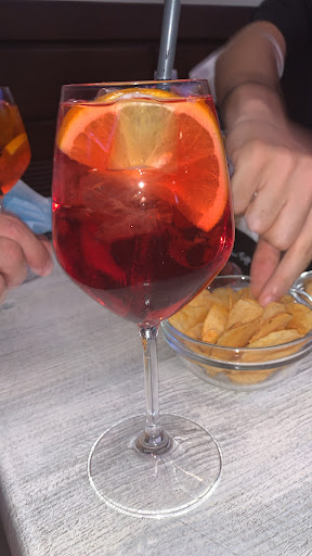 Read moreMi è stato consigliato l’aperitivo in questo bar da dei familiari e non ho potuto resistere alla tentazione di provarlo. Davvero soddisfacente devo dire! Ho preso uno spritz col Campari, a parer mio fatto molto bene, il quale è stato accompagnato da un tris di patatine, tarallini e olive, il tutto per l’attesa. L’aperitivo consisteva in 10 portate: 5 portate fredde (polpo, formaggi e salame, friselline col pomodoro e un paninetto con pane di barbabietola, pistacchio e formaggio) e 5 portate calde (straccetti di pollo con salsa bbq, un mini hamburger, polpette di carne, crocchette di patate con crema di salmone e dei croissant ripieni di formaggio e salame). Ne sono uscito sazio e molto soddisfatto. Il prezzo di 11€ più che onesto. 5 stelle meritate...