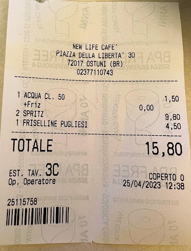 Read moreReally good prices for what they offer and the quality of the items we had was really good. The place itself looks quite nice and right at the main square in Ostuni - really good location. The reason to not give 5 stars is the service - not so friendly people and took quite some time to get our order even though was very simple, but what was a total disappointment: we wanted to order a new round of drinks, we called the waiter, he saw it and started walking towards our direction, about 2 meters away someone else called him and he just turned to other direction to get the order of the other table and never came back. We decided to leave...