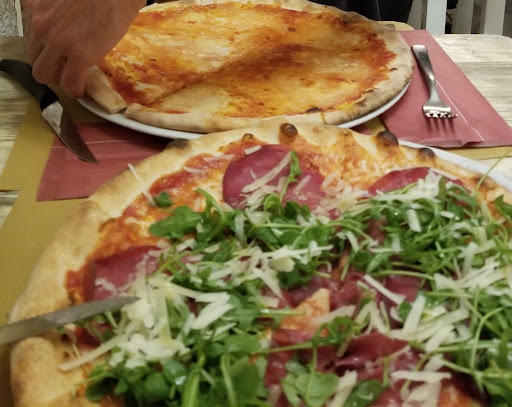 The atmosphere is nice, it seems that is is a popular place for families with happy kids around. The service was very fast, the wines are very tasty. However, the extra Buffala cheese did not appear on out pizza, and in the payment we received extra items that we didn't even order (4x5 Euro VINO). When I told it, they did not treated it well, we still had an extra 10 EURO payment on the bill (We should have payed 12 + 8 Euro for the pizzas, 4x2 Euros for the wines, that is 28 EURO in total). Still, they asked 40 EURO in total. This was not fair, we assume that they treat us as stupid...
