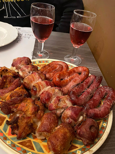 Read moreLocanda es el término más apropiado para definir este lugar porque tiene la calidez de la bienvenida del pasado. Una vez dentro, en un ambiente muy familiar y bienvenida calurosa te adentras en un local con paredes blancas y mesas oscuras que te hacen sentir como algo muy hogareño. Para darle la bienvenida en la entrada, una enorme carnicería donde primero eliges la carne, el verdadero protagonista de este lugar. Una variedad de bombones con tantos rellenos diferentes que me resulta difícil recordarlos a todos y luego las salchichas, incluso estas con ingredientes extraños pero buenísimas. Nuestra elección recae en una variedad de diferentes salchichas, unos pinchos y bombones de carne rellenos. Tan pronto como se sientan, llegan los snak de zanahoria y pepino, buenísimos y las aceitunas,un amable homenaje a la casa para engañar a la espera. Un Diez y elogios para cocinar carne, bien tostado en el exterior pero que permanece suculento por dentro porque el relleno es abundante y también se entiende por el queso derretido que sale. Como guarnición, las patatas clásicas y las cebollas a la parrilla, también excelentes y sazonadas con aceite de oliva virgen extra de calidad. A todo esto hay que sumar la cesta de pan exquisito, pan que solo se encuentra en los hornos de leña de ESPAÑA. Para finalizar te traen un chupito con unos buenísimos rollitos dulces, que ya no sabes dónde ponerlos pero están tan buenos que haces hueco. la factura ...para 2 comensales 23.00€.