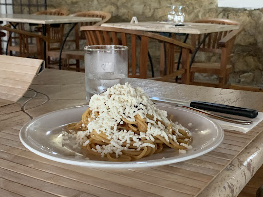 Pessima cucina ! Pasta all’ amatriciana fatta non il guanciale ma con le rimanenze dell’ arrosto di un altro piatto . Piatto di Spaghetti ai pomodorini secchi con il sapore strano e che nuotavano nell’ olio . Porzione di pane carasau 50% sbriciolato; e sopratutto : NON HANNO UN MENÚ SCRITTO con specifica prezzi, costo coperto o delle bibite!!!!! Per non parlare delle numerose mosche all interno del locale. Abbiamo mangiato il commestibile solo per fame (abbiamo dovuto chiedere un piatto vuoto per separare la pasta dall’ olio !!!). Devono ringraziare che dalla fame e dalla fretta di andarcene non abbiamo pensato a fare le foto ai piatti. Arrivati alla cassa rimaniamo sbigottiti dai prezzi. Abbiamo fatto presente delle note negative e ci é stato risposto con arroganza : “allora metteteci una recensione negativa!”. Dispiace sopratutto ai mal capitati turisti che si fermano per mangiare cucina italiana e si trovano sul piatto del “cibo” (se così si può chiamare ) di scarsissima qualità!! Assolutamente sconsigliatissimo !! Posti così dovrebbero chiuderli per “oltraggio alla...