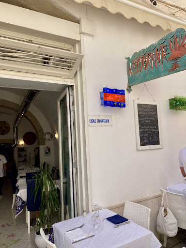 Read moreOtranto odwiedziliśmy na jeden dzień, przyjeżdżając z Lecce. Po zwiedzeniu miasteczka i poplażowaniu nadszedł czas na obiad. Do zatrzymania się w Agli Angeli Ribelli zachęciło nas położenie w pięknej uliczce, wystrój wewnątrz i na zewnątrz w niewielkim ogródku oraz biesiadujący już tam inni goście. Obsługa szybko połączyła nam dwa stoliki na zewnątrz, abyśmy mogli usiąść w czwórkę razem. Do zostania tam skusiła nas również specjalna oferta dnia, gdzie za 25 EUR można było spróbować przystawki, pierwszego i drugiego dania, do których w cenie był jeszcze kieliszek wina. Dwie osoby zamówiły właśnie to, a dwie wybrały dania z karty. Przygotowanie nie trwało długo, talerze wymieniane były sprawnie i przy wzięciu pod uwagę, na jakim etapie jedzenia jesteśmy. Bardzo nam się tam podobało i smakowało. Porcje z menu były do najedzenia się, a porcje z zestawu dnia na tyle wyważone, że nie wyszliśmy ani głodni, ani przejedzeni. Było w sam raz, a spróbowaliśmy różnych specjałów. Ci, którzy zdecydowali się na zestaw dnia dostali bardzo orzeźwiającą w smaku i świeżą insalata di seppia e gamberi, następnie pyszne i aromatyczne linguini z owocami morza, a na koniec super przygotowaną i podaną rybę - filet z dorady panierowany migdałami. Reszta zamówiła standardową porcję linguine ai frutti di mare(15 EUR) oraz bardzo ciekawe w smaku połączenie gnocchi z muszlami i szparagami (16 EUR). Kuchnia jest poczciwa, smaczna, aromatyczna i w przystępnych cenach. Atmosfera miła, obsługa bez zarzutu. Polecam wstąpić do nich na posiłek i dać...
