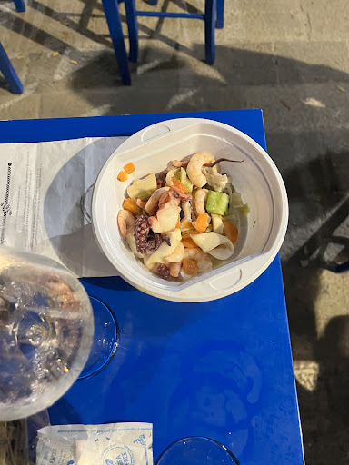 Read moreLocale carino, piccolo e spartano. Incuriosito dalle recensioni alte che spacciavano questo locale come ristorante sono andato a mangiare "il polpo alla pignata" servito su un pezzo di pane che loro chiamano crostone. Sinceramente non mi ha fatto impazzire, ma in questo caso è solo una questione di gusti. Dovrei ritornare per giudicare meglio. Mancano totalmente i primi piatti, gli amari e come dessert c'è solo un gelato pasticciotto freddo artigianale. I vini sono buoni (ne ho assaggiati un paio). Non è un ristorante, ma è un piccolo bistrot dove ordinare qualcosa per andare a mangiare sul mare o al massimo se si è di fretta e non si sa dove andare, ci si può fermare. Lo consiglio solo se cercate un locale casereccio o dei secondi come la frittura di pesce. Diciamo che può andare bene come aperitivo nel tardo pomeriggio o come prima serata, ma ripeto non è un ristorante. In alcune recensioni ho trovato scritto "locale di classe", mi sembra esagerato, dato che le posate e i bicchieri per l'acqua sono di plastica. Ottima l'accoglienza e...