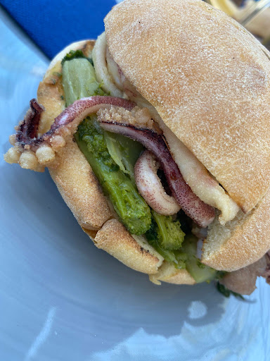 Non so da dove iniziare per questa recensione, prima di tutto siamo rimasti veramente delusi, perché dalle foto che si presentavano il posto non sembrava male, soprattutto perché sul mare. Diciamo ben commercializzato, in pratica una trappola per chi come noi, ci siamo fatti fregare. Era il nostro ultimo giorno di vacanza in Puglia e abbiamo deciso di passarlo ad Otranto, purtroppo siamo rimasti veramente delusi sia del servizio, questo perché in pratica in tutta la vacanza abbiamo sempre trovato ristoratori molto simpatici e alla mano, cosa non avvenuta qui. Chi ci ha servito sembrava non volesse nemmeno starci lì. Inoltre, il cibo era pessimo: la frittura mista di pesce era a tratti (soprattutto i pezzi con i calamari) super salata, immangiabile in pratica. La puccia con il gambero avvolto nel bacon aveva il pane freddo, stantio. Il bacon era ancora molle, quindi neanche arrostito come dovrebbe essere. La salsa di patate non è altro che purè instantaneo, che mi era stato messo al centro del panino gelido. Tutto questo per 15€. Ho fatto fatica a mangiarla, ed io da amante del cibo non dico mai che una cosa non mi piace, ma quest'ultima non mi piaceva per niente. Le altre pucce, anche quelle sempre con pane stantio, non tostato, quella con polpo, il polpo era decongelato e non fresco. Senza sapore quest'ultimo. Non è stata una bella esperienza e mi sento di dare solo la seconda stella per la location sul mare, ma l'impegno qua proprio non c'è neanche...