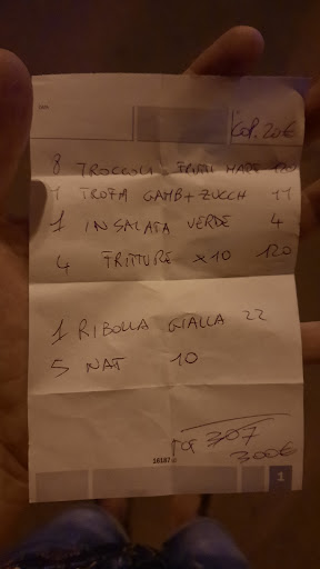 Siamo capitati in questo locale per caso: eravamo di rientro da Santa Cesarea e avevamo un pó fame. Essendo davanti alla casa nella quale alloggiamo in affitto andiamo a chiedere se ci prendono per mangiare qualcosa (eravamo dell'idea di mangiarci 2 insalate). Di fatto entro, il locale é quasi vuoto (il ché desta sempre preoccupazione) e chiedo un tavolo per 2: il cameriere cortesemente mi indica di sedermi dove più mi aggrada, anche in un tavolo per piú persone che eventualmente avrebbero diviso (apprezzato in quanto non é una cosa sempre scontata da parte del servizio). Mi accomodo e, nel mentre che attendo la mia compagna che era passata dall'appartamento, scambio 4 chiacchiere col cameriere. Arriva la mia compagna, il cameriere ci lascia i menù ma ci consiglia i piatti coi gamberoni enfatizzando la freschezza dei crostacei. Convinti dalle parole del cameriere (difficilmente mi lascio ammaliare ma stavolta seguo il mio istinto) prendiamo un primo e un secondo (con contorno) a base di gamberi: dopo poco tempo di attesa, ci vengono consegnati i 2 piatti per i quali confermo la freschezza e la bontá dei crostacei e dei piatti nel complesso. Inoltre, essendo solo noi nel locale e avendo preso confidenza col cameriere , riusciamo a far uscire anche il cuoco dalla cucina per farci spiegare la differenza tra gambero rosso e gambero viola, con tanto di piatto dimostrativo con le 2 specie di gamberi a confronto.. TOP!! Peccato che il locale sia un pó fuori mano rispetto al centro di Otranto, ma sicuramente con una bellissima vista mare su una delle spiagge piu...