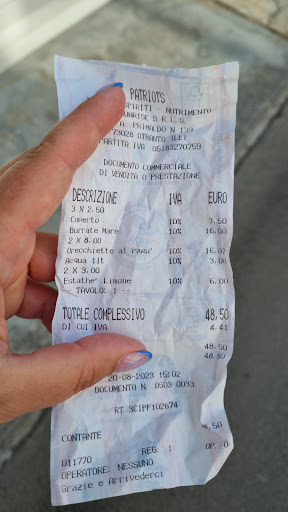 €16 is expensive for a seafood sandwich in Ortranto, but would be fine if it was a great fresh fish sandwhich. This was a compressed breaded fish patty. Other sandwhich about the same, nothing wrong with it but not for the price. No draft beer the day we were there but an OK selection of bottles in the fridge. Overall you can get a great meal for the same price in town. We don't like leaving less than 5* reviews as we know how important these ratings can be but at the same time we dont want others to be fooled like us...