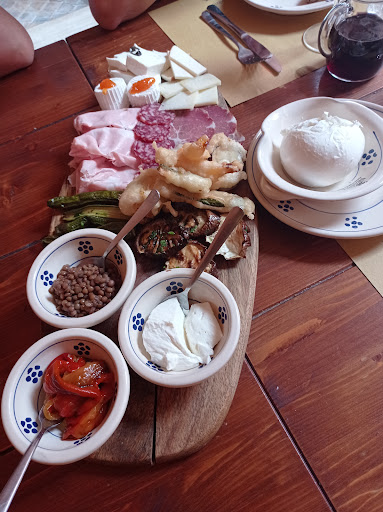 Read moreIn questo ristorante abbiamo trovato qualità, cortesia e gentilezza, ci siamo partite da Roma con un'aspettativa molto alta e non è stata delusa. Per gli amanti dei salumi, formaggi e carne è un paradiso, purtroppo non ricordo i nomi della proprietaria (che è anche la cuoca, i manicaretti li prepara lei) e delle due ragazze carinissime che si occupano del servizio in sala ci tengo a ringraziarle tutte perché ci hanno fatto sentire a casa, offrendoci anche una piccola visita della cantina pre romanica che hanno nei sotterranei del locale. Per quanto riguarda il pasto abbiamo scelto: come antipasti un tagliere misto per due persone, una mozzarella di bufala, tutto squisito! I primi: due fettuccine di grano saraceno senatore Cappelli con tartufo e mantecate con burro di bufala e una porzione di gnocchetti con pomodorini e guanciale, come secondo un piatto del giorno, salcicce all'uva fragola e non ricordo cos'altro, e una burrata con tartufo e guanciale croccante. Acqua frizzante, un quartino di vino rosso della casa e 3 caffè, abbiamo speso 33 euro a persona, un prezzo onesto per la qualità delle materie prime di ottima qualità. Consiglio assolutamente questa trattoria...