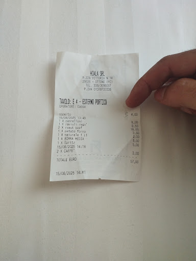 Read moreDopo aver fatto un giro in moto fino ad Ottone, non poteva mancare una sosta per un aperitivo e un pranzo. Per l'aperitivo abbiamo ordinato 3 crodini: 2 con il bianco e uno senza. A pranzo ci ha raggiunto una quarta persona ed abbiamo ordinato come antipasto 4 porzioni di gnocco fritto con salume, per poi prendere 2 stinchi con patate, tagliatelle con i funghi e per me un'altra porzione di gnocco fritto (davvero buono, più piccolo del solito, ma buonissimo 😋 non troppo unto e non friabile, ma morbido, come piace a me 🙂)con salume. Per dolce una coppetta di gelato e una fetta di torta. Per finire un caffè e una grappa morbida. Tutto molto buono e anche se le magliette dei camerieri riportavano una scritta dove si informava la clientela che se si aveva fretta allora era meglio andare altrove, non abbiamo aspettato tanto fra una portata e l'altra. Personale gentile e simpatico. Se passate ad Ottone consiglio una sosta anche perché dispone di...