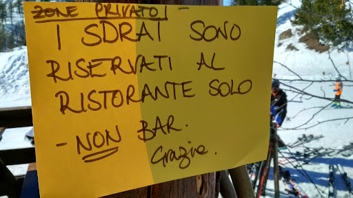 It's worth to hang on your skilift's seat to the top of Punta Colomion skilift. On the top of the mountain with a wonderful view, this bar has the right fuel to keep you skying: order one"Bombardino", a delicious and very alcholic hot cocktail made with Vov, an egg-sugar-alchool alpine spirit, mixed with hot Cognac and coffee. In one word: a bomb that will warm you from inside, fixing you for the slopes. The ambience is very Alpine and cozy too, making it my favourite pit stop place when I'm skying in...