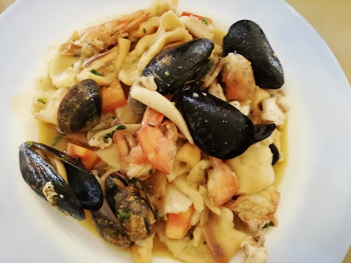 Went for lunch and almost missed it as the restaurant doesn't shout out at you. Shown through to an area at the rear which has an adjustable roof providing shade. Food was excellent. I had fried sardines (done very carefully) with a beautiful salad containing pistachios, raisins, apple and greenery, followed by lasagnetta. Then seadas with honey. My wife also had 3 courses. We had water, a half litre of house white and 2 coffees. Price: €58. Service was excellent. Padria may not feature in guide books but this restaurant is worth stopping for. As another reviewer...