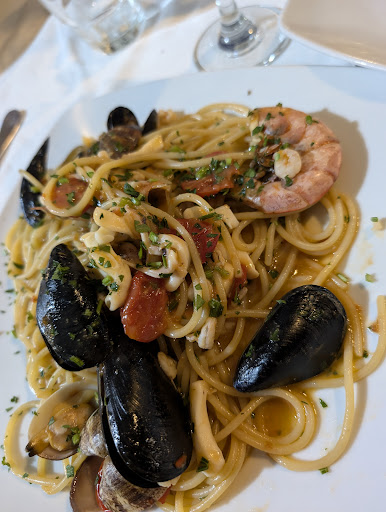 Read moreSono stata in questo ristorante il 7 settembre 2023 con mio marito e la bimba di 3 anni e mezzo. Il posto tutto sommato è carino, niente di che. Nel senso è sul mare ma essendo una serata molto ventilata e anche piovosa le tende erano chiuse quindi non si vedeva il mare. Però ha il suo potenziale. Per cena abbiamo preso cotoletta e patatine per la bimba e nulla da dire prezzo giusto per la porzione in quanto erano due cotelettine è una giusta porzione di patatine. Come antipasti abbiamo preso un misto mare pagato 18€ piatto scarno e onestamente senza sapore e senza amore come si suole dire, nel senso che i gusti non si distinguevano tra pesce spada e tonno; e poi un misto fritto di patatine , panelle anelli di cipolla e crocchette di patate e li niente da dire nel senso una classica frittura. Abbiamo proseguito la cena con un primo di spaghetti al pesto di pistacchio, scaglie di grana e rucola a crudo ma che noi non abbiamo fatto mettere perché non è di nostro gradimento , nel complesso piatto carino, abbondante e buono ma nulla di speciale. Come secondo una grigliata mista di pesce con gamberi,tonno, calamaro e pesce spada : il tonno era morbidissimo è davvero buono , il pesce spada un po’ gommoso, gamberi e calamari buoni. Nel complesso un buon piatto. Diciamo che Apparte l’antipasto di pesce pagato eccessivamente per qualità e quantità la cena è andata bene. Da bere abbiamo preso un calice di vino bianco della casa , niente di che, è una bottiglia d’acqua e abbiamo pagato in totale 90€. Sicuramente per essere a marzamemi prezzi normali ma c’è di meglio in giro sia come quantità che quantità e prezzi. Servizio buono...