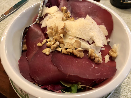 Service was excellent, friendly staff speaking English and Italian and very kind and helpful. Our table was tended to frequently (booth) and they always asked if we needed any food or drink which always arrived promptly. They were willing to answer our cuisine questions and offered us complementary bread. The children were very hungry so this was a real bonus while we waited for our order. Our food did arrive very quickly. The pizzas were huge and very tasty, and my beef with spinach, Parmesan and cherry tomatoes was excellent! The house white was fresh and sparkly- and deserts were delicious, not overly decadent or too rich in consistency. We had the equivalent to cream brûlée and a cheesecake (modern light style) not overly flavoured or pretentious- also excellent! ALL the staff were friendly and patient with my 2 year old who just wanted to be on the floor and was at the end of her day. This honestly made such a difference because it’s always hard to manage restaurant visits with little ones but not here!! So thank you for the staffs attitude towards little children.