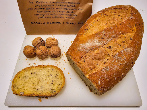 Ci vado per la prima volta ingolosito dalle foto del loro sito web, che mostra vetrine con distese di brioches, almeno una dozzina di formati diversi se non più... idem la zona pasticcini... L'ambiente è moderno, una bella caffetteria con pochi tavolini interni disposti su una sola fila, adatti a 2 persone per tavolino, disposti per lungo fronte bancone, e all'aperto una decina di tavoli in un "giardinetto" ricavato a fianco del parcheggio auto. Con grande stupore una volta entrato noto che le decine di corsie in acciaio che dovrebbero contenere come da foto sul web le varie brioche e paste, sono vuote, l'assortimento si basa su un plateau di cartone appoggiato sulle corsie suddette, con una dozzina di paste in tutto, 2 cornetti alla crema, 2 al pistacchio, 2 ai lamponi, 2 sfogliatine con le noci e 3 brioches vuote integrali con impasto al miele... diciamo che dalle foto pubblicate sul web alla realtà siamo dalle stelle alle stalle. Sulle foto del loro sito conto ben 12 varianti di paste... da 12 a 5... siamo a livello di pubblicità ingannevole, o cambiate le foto sul sito o offrite quello che pubblicate. A lato zona pasticceria solo alcuni vassoi di biscotti... una tristezza insomma dalle foto del loro sito alla realtà. Faccio colazione con una brioche alla crema, discreta anche se leggermente secca (classica da panificio e non pasticceria) ma nulla da eccepire, nei dispenser sui tavolini e sul bancone di zucchero vario, NON è previsto il dolcificante, devo alzarmi e chiederlo al banco e mi viene dato. Il locale prevede 3 aree, una caffetteria, una panificio e una affettati e formaggi. Mi sposto nell'area pane, essendo soprattutto un panificio mi aspetto un gran assortimento... invece la situazione è copia e incolla quella della caffetteria, vi sono molti scaffali in legno vuoti e molte ceste pane altrettanto deserte, situazione da Sabato sera alle ore 19 dove devi prendere quello che resta, qui l'assortimento si risolve con 6/7 tipi di pane in tutto, di cui 3 con lo stesso impasto essendo ciabatta/zoccoletto grande o a treccia fatti con lo stesso impasto, delle tartarughe 4 in totale un paio di ciabatte e 6/7 zoccoletti, non c'è traccia di mantovane, rosette, soffiati, pani con impasti particolari tipo zucca o farine particolari, pane rustico (tipo Altamura) o in cassetta, per non parlare della totale assenza di leccornie tipo panini con olive, noci, speck, cipolla o simili, insomma, molto deluso da un panificio che mi dicevano avesse un nome e un assortimento importante... più in la, pizza in teglia da tranci e 2 tipi diversi di focaccia farcita, una olive e una pomodorini che ho acquistato e provata a casa... discreta, leggermente abbondante di sale sopra ma poco condita in generale, insomma, una delle tante assaggiate che restano nell'area "da non ripetersi" o nulla di che, ho comprato la ciabatta che trovo abbastanza buona, anche se poco croccante purtroppo, ma con impasto ben alveolato internamente e leggero, segnale di una buona lievitazione, nel banco affettati non si evince nulla che mi rapisca l'occhio. L'impressione è quella di un panificio che lentamente ha perso molta della sua grinta ed entusiasmo e posso capire visto che ai giorni d'oggi la gente compra il "pane" al supermercato (prodotti dell'industria alimentare moderna ricchi di additivi e schifezze varie, chiamarlo pane è un sacrilegio) purtroppo capita spesso di vedere forni in stato di semiabbandono, certo è che chi ci entra come me, dopo aver visto le foto sul loro sito ed essere stato consigliato da persone che lo frequentavano anni fa (evidentemente parecchi anni fa) consigliandolo per i parecchi formati di pane... resta sconcertato, forse il Lunedì è un giorno di minore afflusso e per questo do 3 stelle invece che 2 vista la situazione, per stimolarli a fare meglio, la qualità paga sempre e se fate pubblicità come sono venuto io da tutt'altra zona di Padova, in cerca di assortimento e qualità, verranno anche altri e non...