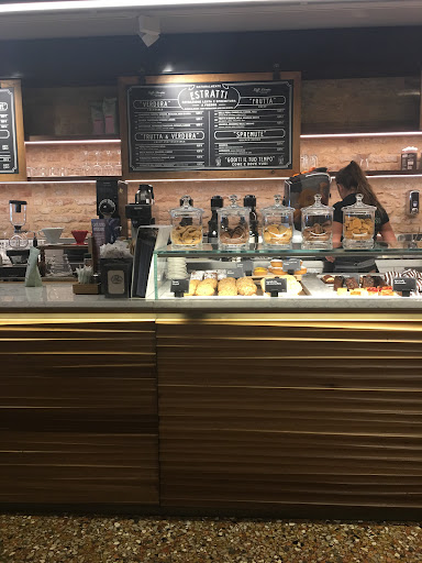 Read moreDi recente abbiamo pranzato presso questa struttura rimanendone pienamente soddisfatti 👍. Giunti in loco verso le 14.00 🕑 inoltrate, siamo stati cordialmente accolti dai ragazzi 👩🏻🧔🏻 al bancone, dando subito un'occhiata 👀 alla vetrinetta espositiva. Molto ben assortita quest'ultima, soprattutto per quel che riguarda le schiacciate ripiene 🌯. Alla fine abbiamo optato proprio per un paio di queste (Sopressa/Asiago e verdure/formaggio le farciture), oltre ad un tramezzino tonno/uova e due bicchieri d'acqua 💧 con limone 🍋. A fine pasto ci siamo concessi anche un paio di caffè "cold brew" (con estrazione a freddo) aromatizzati rispettivamente alla cannella e al caramello. Tutto davvero buonissimo 😋 e servito in tempi brevi. Valido il rapporto qualità/prezzo. Gentili e cordiali i membri dello staff, dal ragazzo 🧔🏻 che ci ha illustrato i gusti delle schiacciate 🌯 alla cameriera 👩🏻 che ci ha serviti al tavolo. Bagni 🚾 puliti e in ordine 🚽🧻🧴. Gradevole e di tendenza la tematizzazione generale della struttura; degno di nota, soprattutto, il grande pannello a muro recante i volti e le citazioni di alcuni giganti della letteratura e del pensiero come Hegel, Montesquieu, D'Annunzio, Goethe, Hemingway e Shakespeare (vedasi foto 📸 allegate 📎). A noi è sicuramente piaciuto quindi LO CONSIGLIO 👍.