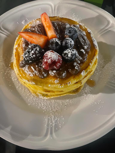 To begin with, the service outside was terrible! There were two waitresses, but neither of them seemed to care about providing proper service. The coffee we ordered, which was just a regular coffee with no special requests, took over an hour to arrive. This was despite the fact that we were already waiting for quite some time. Even the pancakes, which also came late, were served much earlier than the coffee.