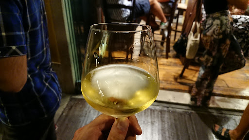Innanzitutto, l'enoteca era incredibilmente piccola. L'area era così ristretta che le persone si trovavano praticamente a gomito e spesso era difficile muoversi senza urtare qualcuno o rovesciare bicchieri. La mancanza di spazio ha reso l'atmosfera poco piacevole e poco accogliente.