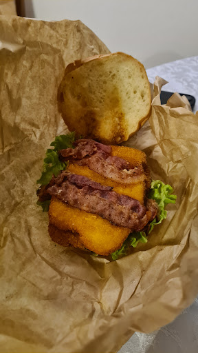 Read moreHo ordinato un hamburger archeologia con pollo , il pollo molto croccante e saporito , dopo di che ho ordinato un hamburger storia , a parere mio il migliore tra i due , bacon più croccante rispetto a quello al pollo , carne succosa , tenera e molto buona , dopo di che ho ordinato le patatine dipper , molto croccanti e saporite , un ambiente piccolino ma volendo ci si riesce anche a sedere direttamente sul posto per mangiare , fornito di un paio di piccoli tavolini e qualche sedia , personale molto gentile e cortese , ed i prezzi nella media , sarebbe quasi da 5 stelle a mio parere, dico quasi perché io cambierei la tipologia di pane in quanto gli ingredienti dentro non vengono ben trattenuti da questo tipo di pane , ma rimane sempre una mia modesta opinione , tutto sommato Ve lo...