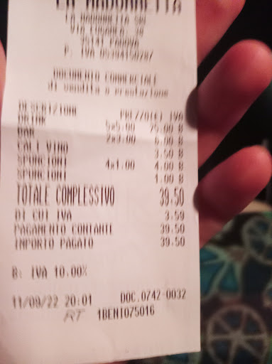 Sono stata in questo "bar/osteria" o come volete chiamarlo questa sera alle ore 19.30, abbiamo aspettato mezz'ora perché ci preparassero un tavolino per 8 persone per prendere un aperitivo...alla fine abbiamo dovuto arrangiarci e unire 2 tavoli. Dopo un'altra mezz'ora sono venuti a prendere le ordinazioni, 5 spritz, 2 coca cola e 1 bicchiere di cabernet...quando ci sono arrivato gli aperitivi ci hanno avvisato che non avevano il Cabernet e sono passati altri 10min per un bicchiere di vino...Dulcis in fundo abbiamo dovuto chiedere qualcosa da sgranocchiare con gli aperitivi, non avevano patatine, non avevano toast, avevano solo del pane stantio (una ciotolina minuscola) con una sottospecie di hummus che sembrava cartapesta al sapore di nulla!!! A dir poco...