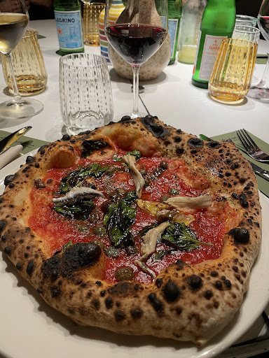 Really nice restaurant the selection was good and everything was also available online in a lot of different languages. The food was amazing I shared two pizzas with a friend and both of them were really tasty, the cheese and salami that were baked in the crust were a highlight. The place also hat an authentic and unique but stylish vibe that matched very well with everything else. The staff was also very welcoming and friendly they explained everything completely and answered all questions we had. The very quick and available without being intrusive...