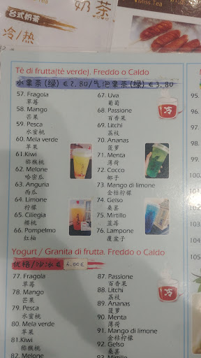 Prezzo e competizione: al tempo di questa recensione ogni Bubble tea è 2,7€ (che sarebbero 2,5€ se includiamo quella gratis ogni 10, fatevi fare la carta fedeltà!) invece dei 3,5€ di Ruggi ad esempio (con quello scherzo dei punti per ogni € speso), ma Ruggi o gli altri della zona non hanno nulla in più se non il prezzo più alto, gli ho provati tutti e alla fine ho scelto questo posto per aumentare la mia dipendenza da bubble tea :P