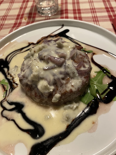 Read morePassato per pranzo, ho trovato/scoperto proprio il tipo di locale sullo stile che a mi piace: una trattoria/osteria senza troppi fronzoli, in stile rustico che cucina locale. Il menù prevede una intera pagina alla specialità del locale ovvero la tagliata di manzo (scottona), che poi viene ripresa anche nel menù tradizionale negli antipasti sotto forma di tartare in 4 varianti. Io ho scelto, di queste ultime, quella con olio al tartufo, pere, grana, pepe, davvero buonissima. I cappellacci con le erbette anche molto buoni,forse un filo troppo burro ha riempito il fondo del piatto, patate al forno sublimi, verdure sott'olio OK! Il personale è molto cortese,i tempi in sala sono pressoché perfetti (occhio a non dimenticare le forchettte tra un cambio e l'altro). Buono anche il cabernet della casa. Vi consiglio sicuramente questa osteria, Voto finale 4 su 5. La 5 stella non l'ho data perche: parcheggio piccolino, leggero odore sgradevole nel locale interno, qualche filo di troppo da...