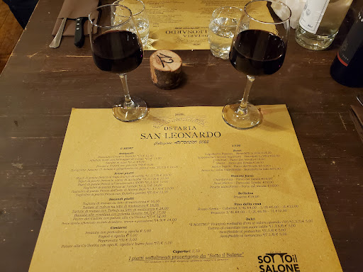 Read moreIl San Leonardo mi piace per l'atmosfera da vecchia osteria e per il menù che propone ma questa volta la cena è stata un po' "agrodolce". Sebbene i piatti fossero tutti molto gradevoli, il servizio ha lasciato molto a desiderare. Bene per il menu, originale e invitante, con proposte che ci hanno soddisfatto. Il servizio invece è risultato un po' improvvisato, il personale di sala sembrava inesperto e disorganizzato, con evidenti difficoltà nella gestione dei tavoli e delle comande. Le portate arrivavano a singhiozzo, una alla volta per commensale (eravamo in 4), con attese lunghe, costringendoci a mangiare i piatti freddi o ad iniziare a mangiare da soli. La distribuzione dei piatti "a singhiozzo" ha favorito differenze nella quantità di cibo, lo stesso tipo di cibo, servito nei diversi piatti. Maggiore attenzione e attenzione alle comande eviterebbe queste uscite a "piatto singolo" davvero sgradevoli. Ultimo ma non ultimo: non eravamo stati informati del servizio "a turni" e, alla fine della cena, siamo stati (garbatamente) invitati a liberare il tavolo. Il San Leonardo ha un grande potenziale culinario, il servizio necessita di un miglioramento. I sapori ci abbiano conquistato, ma l'esperienza complessiva è stata compromessa da un servizio in generale poco professionale. L'augurio e che il ristorante possa formare adeguatamente il personale e offrire un'esperienza degna...
