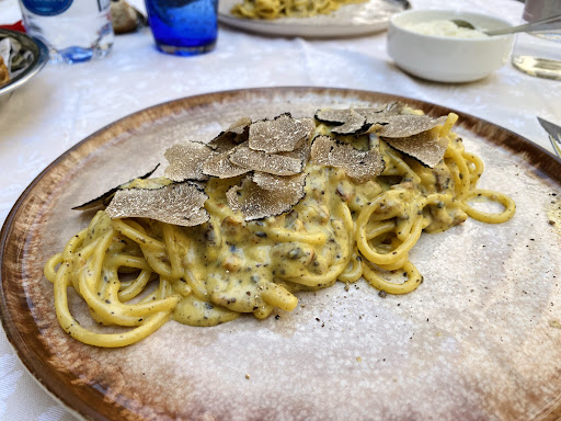 However, what truly stole the show was the spaghettoni alla carbonara tartufata. Without a doubt, it was the best pasta we’ve ever had. As frequent travellers throughout Italy with a good knowledge of its cuisine, we can confidently say that this dish was simply exceptional. So good, in fact, that we returned just to enjoy it once more before leaving the city.