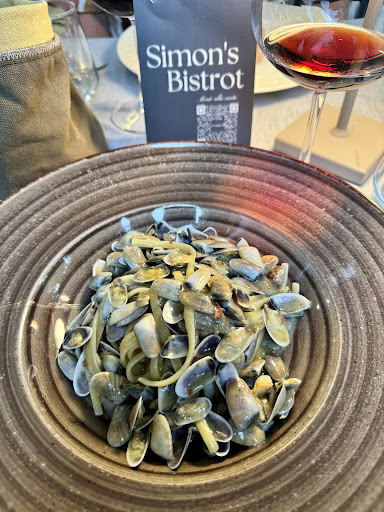 Read moreSono stata a cena domenica sera, il locale si trova dentro il quartiere Santa Rita dove si trova anche la parrocchia, c'è un bel parco alberato e tenuto bene dove per chi è a cena da Simon's Bistrot può godersi la pace e tranquillità del posto e lasciare liberi bambini e cani, il locale non è grandissimo ma luminoso e arredato con gusto, tavoli all'interno e la veranda in stagione estiva tutta aperta non mancano tavoli e divanetti all'esterno sia per la cena che per un aperitivo, bella la selezione dei vini a vista e vale anche per la cucina, cenato a base di pesce con vino bianco in bottiglia tutto su consiglio di Francesco persona cordiale simpatica e preparata anche il resto del personale sempre attento alle esigenze della clientela, buona qualità delle materie prime e altrettanto nella presentazione dei piatti non ultimi i dolci tutti fatti in casa piacevole serata atmosfera rilassante complice la vista del parco, dimenticavo fanno anche la pizza, un menù per bambini vero e proprio non c'è ma sicuramente sono in grado di soddisfare anche loro. Tirando le somme tutto bene solo il prezzo un po' alto comunque però...