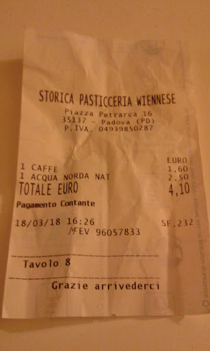 The risk of theft !!!! The waitress stole my AirPod (but she did not know that AirPods can be tracked). After we finished our cafe, while we were still in the Pasticceria Wiennese, the waitress came over and cleaned up the table.