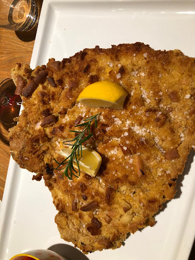 The location is an amazing place situated in the back of a church. The location is elegant but with a contemporary design touch which perfectly mixes with the 17-18th century style of the church. The service is elegant and they all tend to smile a lot, which gave me a good sense of comfort and coziness. They immediately welcome us with a welcoming taste. The room is large but the tables are 4 each one covered by one elegant light. The food on the menu is straightforward, I liked it. We chose 2 primi, 1 starter (incredibly good!) and then we shared the costata. Everything was outstanding! An explosion of taste with the ravioli carbonara and also with the saffron from the linguine. Incredible! The costata is a must try! Nothing not even remotely connected to fine dining but that was fitting perfectly with the atmosphere. An very elegant cotoletta, I would say. Definitely worth to try, incredibly tasty! To conclude the desserts were fantastic! Not many words to describe them just so well on point with the menu. One minor note, the wine selection could be improved nothing that interesting worth to try. The price was incredibly fair. 2 people, 2 glasses of red wine, 1 starter, 2 desserts, 2 coffee, 2 primi and the costata only 146€ Also, when asking for the desert, we asked for a smaller portion of the Zabajone. They only charged us 5€ instead of 8€. That’s incredibly fair. Keep up with the good work, guys! The Star will arrive...