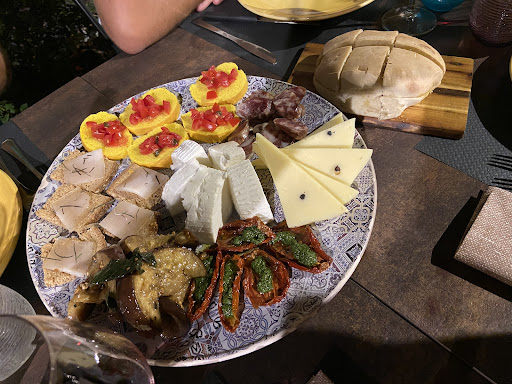 Antipasto ricco e ben presentato, con gusti variegati e un percorso tra gli assaggi da non stancare il palato. Ricotta fresca,pomodoro con ripieno di basilico e menta, bruschetta di curcuma e pomodorini, pane ai 7 cereali e una maionese fatta in casa, uovo alla monachella(eccezionale),caponatina classica, involtino fritto di fagiolini caciocavallo e salame piccante e per finire un'arancino al limone per pulire dai gusti. Il tagliere di pane fatto in casa ha dato il tocco in più ad ogni assaggio! Tutto preparato con semplicità e cura del dettaglio!