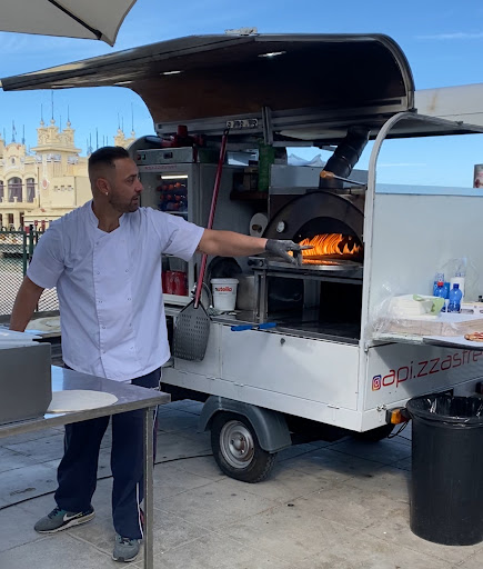 The first time we ate pizza from foodtruck on the beach in Mondello- delicious!