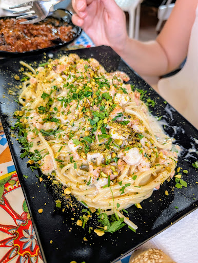Read morePremetto che sono uno che capisce il tipo di ristorante nel quale si siede, quindi di certo non mi aspettavo materie prima di alta qualità o chissà cosa però ci sono alcune cose che non mi hanno convinto affatto il piatto del giorno spaghetti con vongole, gamberetti cozze e pistacchio era molto ben presentato ma il sapore era insufficiente gamberi quelli bianchi che si trovano surgelati senza sapore le vongole idem (non erano vongole italiane ma se non sbaglio estere) l'unica nota positiva erano le cozze, antipasto di pesce per due si salva solo la polpetta di mare, la sarda beccafico il ripieno era sproporzionato rispetto alla grandezza della sarda ed era troppo agrumato a mio gusto, l'insalata di mare quella già pronta molto gommosa, la caponata di melanzane freddissima e con soli due pezzi di pesce spada ma la vera nota dolente era la frittura di calamarette mi dispiace dirlo ma quasi dava fastidio perché una frittura untissima e soprattutto Moscia per me non mangiabile, il prezzo è in linea con quello che si offre personale molto cortese ma la cucina per me è la base quindi non credo...