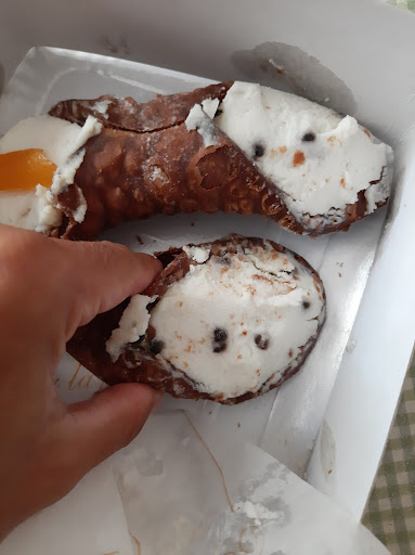 Read morePasticceria di un'incompetenza madornale. Su consiglio di amici siciliani siamo andati a prendere cannoli ed arancine in quella che doveva essere una delle migliori pasticcerie di Palermo. Dopo aver Specificato ripetutamente ai prorietati che avremmo viaggiato in nave, ci hanno assicurato che i cannoli, anche riempiti, sarebbero arrivati intatti a casa. In più, hanno pensato bene di mettere le arancine bollenti in contenitori di ripiego, costituiti da 2 vassoietti di cartone. Il risultato? Cannoli con scorza della stessa consistenza del ripieno e arancine che hanno l aspetto di un risotto galleggiante nell'olio( quella che nella foto ha ancora la forma di un arancina é l unica delle 8 che era in vetrina e quindi era fredda). Credo che un professionista del settore ci avrebbe fatto quanto meno desistere dal portare le arancine o almeno avrebbe aspettato che queste ultime si fossero raffreddate e, soprattutto, ci avrebbe consegnato i cannoli con la scorza rigorosamente separata dalla ricotta così come fanno probabilmente tutti i professionisti del settore a Palerno, eccetto loro. Evidentemente erano fin troppo interessati ai 39,50€ che gli abbiamo lasciato da dimenticare come si lavora.1 stella é...