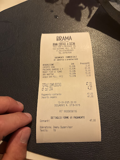 Dining at Brama in Palermo was an unforgettable experience. From the very start, the elegant yet welcoming atmosphere set the tone for a perfect evening. The staff was attentive, knowledgeable, and clearly passionate about both the food and the cocktails they serve.