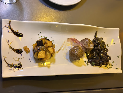 Read moreFor the nights where you don't want to people watch but instead want to just chill with your dinner party (2-4 people), this is the place. This is just 100m from Mercato Ballaro, but in the evening the inner courtyard at a 4 star hotel exudes tranquility with few distractions beyond the conversation and the next bite. A seafood focused menu when we went with squid and octopus items. They did not have a wine list, but instead we told our waiter what we were looking for and they acted as our sommelier--nailing our desires, but with a big price tag. As the place got busier later into the evening, the server had a harder time keeping up, but we were not in a rush to make the theater or catch a bus back to the cruise ship. We loved the Torre di Melanzane (eggplant) and two orders of the Scrigno di mare with gigantic squid landed at our table and quickly disappeared. My squid ink with swordfish had the fish in tiny cubes so there was no chewing on potentially tough flesh. Tiramisu was tasty and the Lemon-basil sortbetto was also a winner (that could be shared). TheFork promotion helped keep the bill in check, otherwise this would be on the...