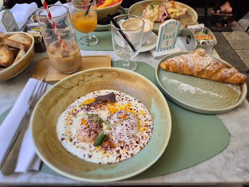 Read moreLocale in centro adatto per fare una colazione internazionale, un Brunch o pranzo. Arredamento elegante con cucina a vista, entrando salta subito all'occhio l'azzurro "Tiffany" che trovo davvero splendido. Il menù offre vari tipi di piatti classici(all'inglese) e altri in parte rivisitati da loro. La qualità in generale è buona ma alcune proposte, a parer mio, potrebbero essere migliorate, una su tutte i pancake che ho trovato troppo "farinosi" e pesanti da mandare giù. Ho provato anche il loro Club Sandwich incuriosito dalla loro scelta di servirlo con fette di anatra affumicata a differenza del classico pollo, il risultato finale mi ha deluso e non poco. Il pane era molliccio e l'anatra presente nel sandwich era in quantità esigue, anche la presentazione del piatto lascia a desiderare come si può vedere dalle foto. Peccato perché altre cose mi sono piaciute molto, come ad esempio le uova alla Benedict e il loro Croque Madame ben fatti e soddisfacenti. Il servizio l'ho trovato veloce e disponibile ma avvolte un po' impreparato sul menù. Nota di demerito per il bagno dove manca la presenza di uno specchio(non credo ci voglia tanto ad inserirlo). Prezzi abbastanza alti e alcuni piatti ad oggi non valgono il biglietto. Tirando le conclusioni finali, colazioni da Tiffany si è rivelato un esperienza fatta di alti e qualche basso, spero che questo locale possa andare a...