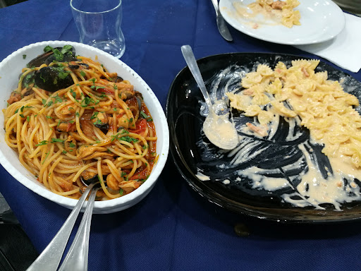 Read moreEssendo clienti della vecchia gestione, ieri sera io e altri 10 amici abbiamo deciso di cenare in questo locale scegliendo il menù giro pasta da 10€. Avevo prenotato giorni prima via whatsapp ma al nostro arrivo non è risultata nessuna prenotazione, nessun problema da parte del direttore che ci ha subito apparecchiato un tavolo. Iniziamo la cena con il buffet di antipasti, molto ricco e vario tutto di ottimo sapore. Diamo il via al giro pasta e la cameriera (molto gentile e cortese) ci spiega come funziona e ci propone le prime due portate. Spaghetti alla marinara (veramente ottimi) e farfallette con gambero rosso e spinaci (mai assaggiato ma credo che sia diventato il mio preferito!) La terza portata a base di carne “penette salsiccia funghi porcini e panna” non è stata gradita da nessuno aveva un sapore acido e i funghi erano quelli della lattina. Avevamo lasciato giusto qualche pennetta nella pirofila e il direttore ci ha rimproverato dicendoci che lasciavamo troppa pasta (quando questa era la prima visto il cattivo sapore). Portata successiva “Pennette alla boscaiola” ottima. Ultima come ciliegina sulla torta abbiamo scelto”Farfallette al salmone”, divina!. Il direttore (per intenderci quello pelato) soffre di sudorazione eccessiva e davanti i clienti si asciugava continuamente il sudore con la mano toccando subito dopo piatti e posate (vomitevole!) inoltre è stato molto sgarbato nel servizio, tutto al contrario la cameriera che è stata veramente accogliente. Voto servizio 1 a causa del direttore. Voto cibo 7, avrei dato di più se non fosse stato per quella portata di brutto gusto. Dopo aver pagato il titolare mi ha chiesto gentilmente come avessimo mangiato e se ci fossimo accontentati, molto gentile e garbato! Continuerò a venire ma se non cambiate direttore perderete molta...