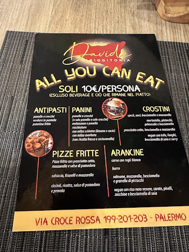 Read moreLa Friggitoria da Davide è un locale storico di Palermo, situato in viale Croce Rossa 199-201. È specializzata in prodotti fritti tipici siciliani, come panelle, crocchè, arancine, sfincione e pane e panelle.