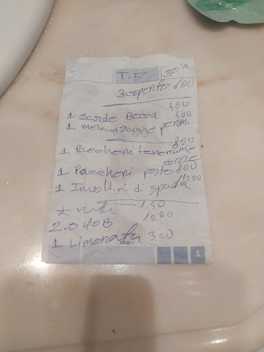 Oggi, al tavolo eravamo in 5. 3 adulti con due portate uguali, un terzo con paccheri pesto e gamberetti e due bambini con due arancine. Lunga attesa, la cosa mi spazientisce, ma la buona cucina non può essere veloce. Un momento prima che ci portassero i primi viene il cameriere e ci avvisa che le arancine per i bimbi non ci sono e che dovevano scegliere un'altra portata. Io gli chiedo, "ma questo vuol dire che mangeremo separati, ma soprattutto che dovremo aspettare una cottura in più?" erano già le 14e20 e non avevo voglia di mangiare alle 3. Ma il cameriere ci dice che le nostre portate sono pronte: cioè ci avvisate a fine cottura che due portate non sono disponibili? non ci potevo credere, va a capire se l'errore lo ha fatto il cuoco o il cameriere. Per cercare di limitare i danni chiediamo della pasta al sugo per i bambini. Arrivano due portate, due adulti cominciano a mangiare, poi la terza e quando è pronta le due paste al sugo... che per essere precisi era SUGO con pasta. Una zuppa di salsa con le penne che ci navigavano dentro, oltre avere una salsa dolcissima oltre i limiti. Beh abbiamo fatto questa pessima esperienza. Succede. Ma oggi come oggi si mangia fuori sempre meno e quando lo faccio voglio, esigo, sia una bella esperienza. 1 antipasto caldo 1 fiori di zucca in pastella (2 pezzi) 2 Coca cola 6 euro 1 Chinotto 3 euro 1 acqua 2 prosecchi 10 euro 2 paste al sugo 10 euro 1 paccheri pesto e gamberi 10 euro 2 anciova (se non ricordo male) Totale 77 euro...